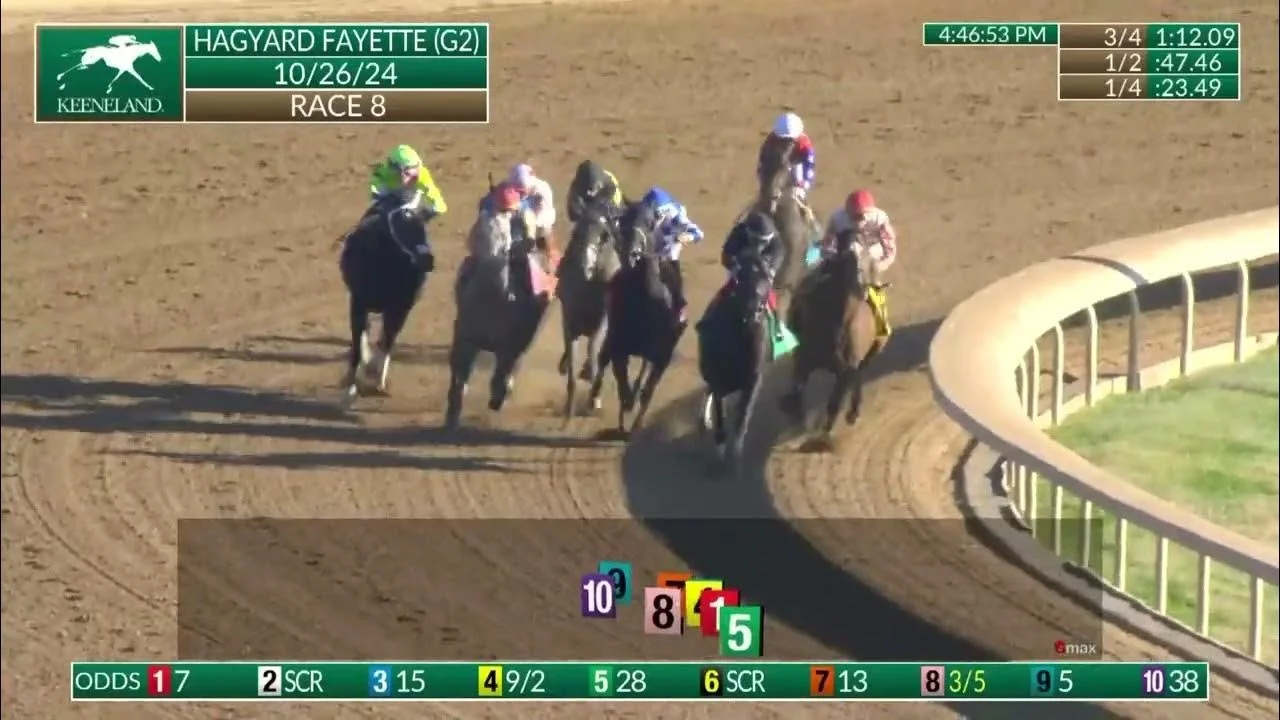 Bright Future (wide) surges past Film Star to secure Fayette honours on Keeneland’s closing weekend.